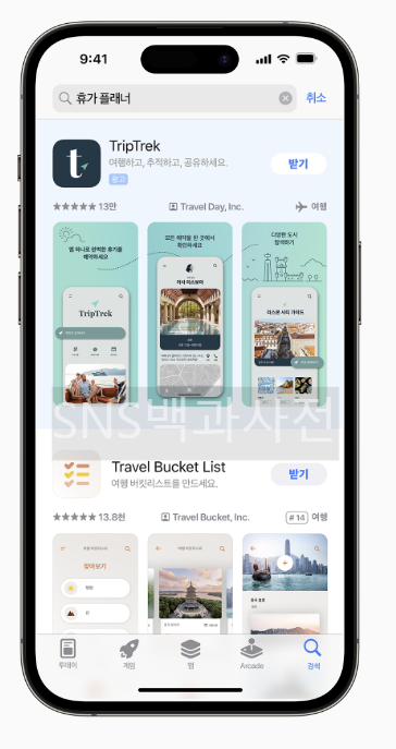 : 투데이 탭, 검색 탭, 검색 결과, 제품 페이지 광고